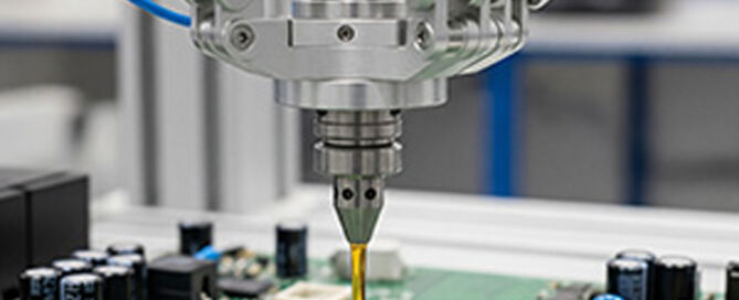Die Vergussdosierung ist ein entscheidender Prozess in der Elektronikfertigung, um Bauteile und Leiterplatten zuverlässig vor schädlichen Umwelteinflüssen zu schützen.