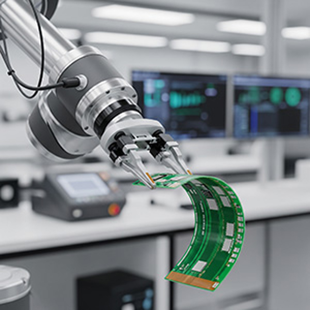 - Automatisierte Biegevorrichtungen und robotergestütztes Handling flexibler PCBs